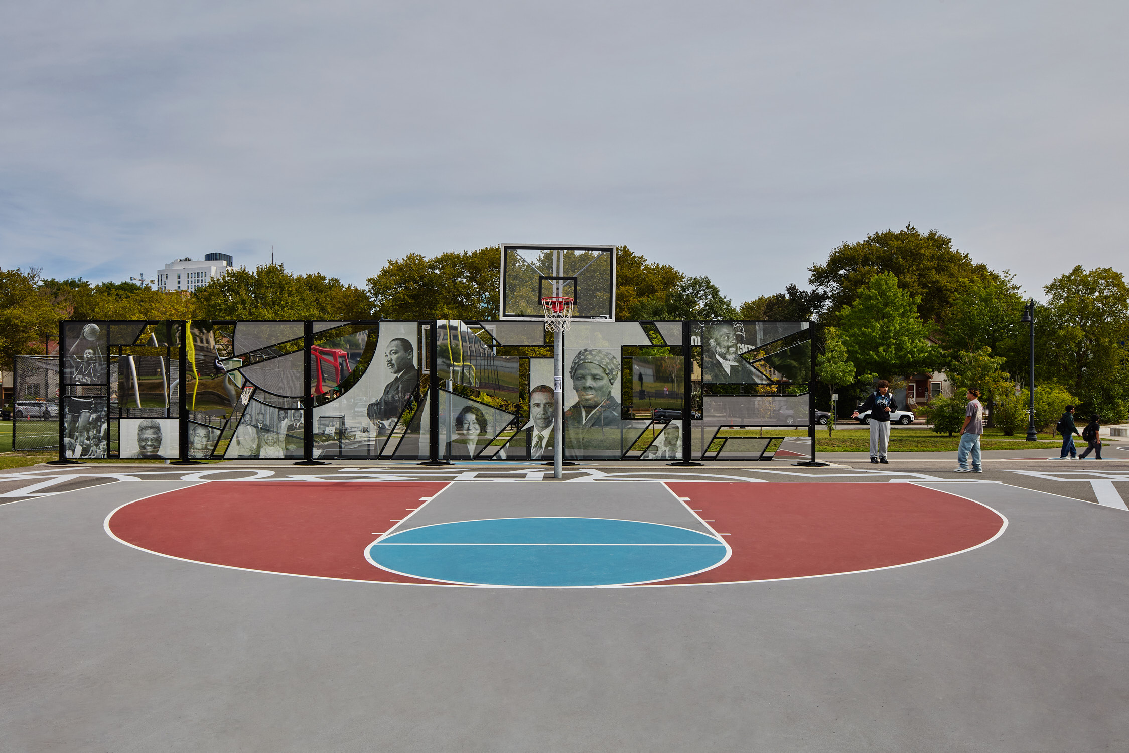 Studio Luz Architects and Boston-based artist Marlon Forrester collaborated on the P.L.A.Y. (Play, Learn, Athletic, Youth) project at Roxbury’s Dewitt Playground. This revitalized, inclusive space fosters intergenerational engagement, celebrates heritage, and promotes health and wellness. The centerpiece mural fence honors Roxbury’s history and culture, transforming the playground into a vibrant community hub that bridges past and present.